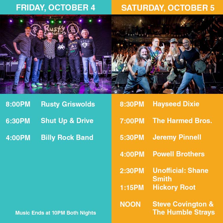 This free music festival is located at 202 Madison Avenue next to the NKY Convention Center and RiverCenter. Friday, October 4 from 4pm-10pm is cover band night. A regional favorite - The Rusty Griswolds - headlines. Saturday, October 5 from noon-10pm is all original music with Hayseed Dixie headlining. Enjoy food from Chowhounds, Good Guyz and Turkeys R Us. And yes, there will be bourbon.